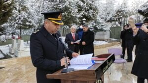 Vali Aydoğdu konuşmasının ardından Şehitlik defterini imzaladı. Konuşmaların ardından Kur’an tilaveti ile Şehitlere dua edilerek şehitliklere karanfil bırakıldı.