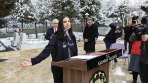 Programda söz alan Aksaray Valisi Hamza Aydoğdu yaptığı açıklamada; “Uğurunda canlarını vererek bizlere bu toprakları vatan yapan aziz şehitlerimiz bugün yine sizin karşınızdayız. Şehitliğe girildiğinde Ay Yıldız’ın gölgesi ve onun serinliğinde istirahat eden sizlerin maneviyatı bizleri sarıp sarmalıyor.